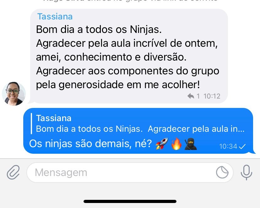Aqui você não está sozinho em casa. Faça parte da Comunidade dos Alunos Ninjas, troque experiências, faça networking, tire dúvidas e receba ajuda.